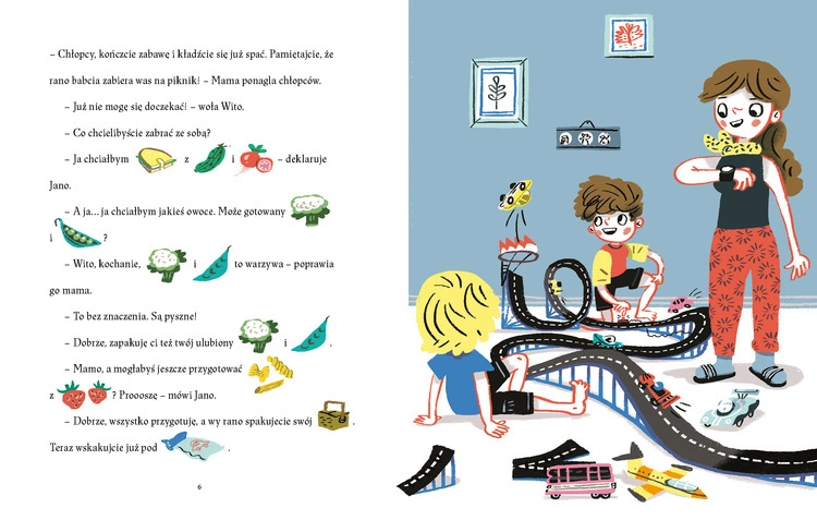 Chłopcy wybierają się z babcią na piknik. Ale co to? Czy to znajomy magiczny kamień? I co na łące robią krasnoludki? A czy pająki potrafią kopać piłkę?