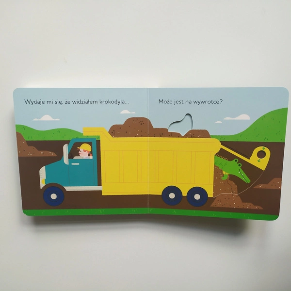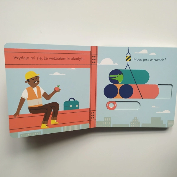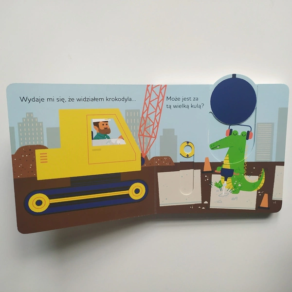 Na budowie ukrył się krokodyl. Może czai się za cegłami? Może jest w rurach?