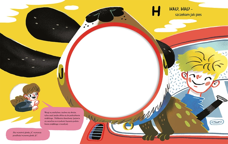 Angażująca i zabawna książka, która pomoże dzieciom w nauce wymowy. Każda rozkładówka ma otwór, w który można włożyć głowę i świetnie się bawić przy udawaniu zwierząt, pojazdów i maszyn. Pomogą w tym Jano i Wito, bohaterowie bestsellerowych książek dla najmłodszych czytelników.