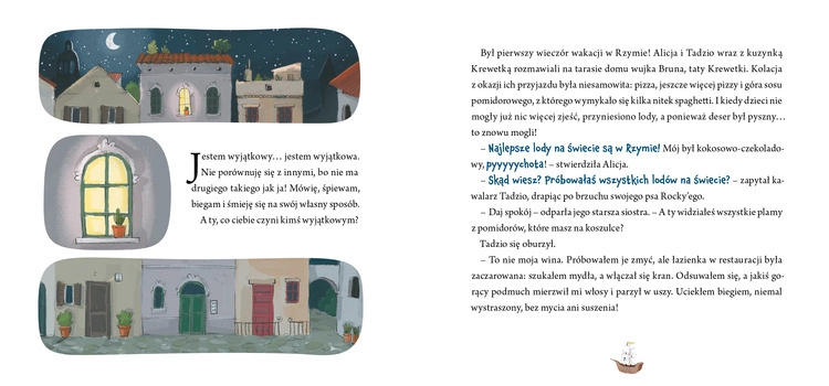 Tadzio i Alicja doczekali się młodszego braciszka. Odwiedzają też kuzynkę Krewetkę w jej domu w Rzymie. Odwiedzą tam Koloseum, zobaczą Usta Prawdy, a przede wszystkim nauczą się radzić sobie z zazdrością.