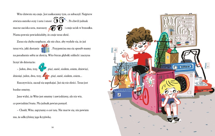 - Wito czeka na swój wymarzony prezent urodzinowy – granatowy rower! Kurier przywozi różową paczkę. Czy rower będzie różowy? Czy różowy rower jest dla chłopców? Książka z logopedycznej serii „Jano i Wito uczą mówić” pomoże dzieciom ćwiczyć wymowę głoski R.