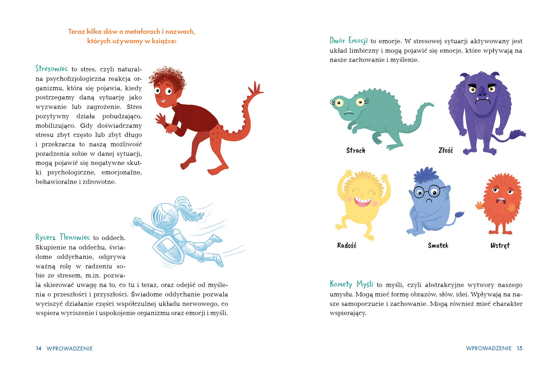 „Na ratunek emocjom” to książka dla dzieci i wszystkich dorosłych, którzy im towarzyszą – w domu, w szkole i w przedszkolu. Składa się z części dla dziecka i z części dla dorosłego. Każdy rozdział to opowiadanie oraz zabawy i ćwiczenia, które: