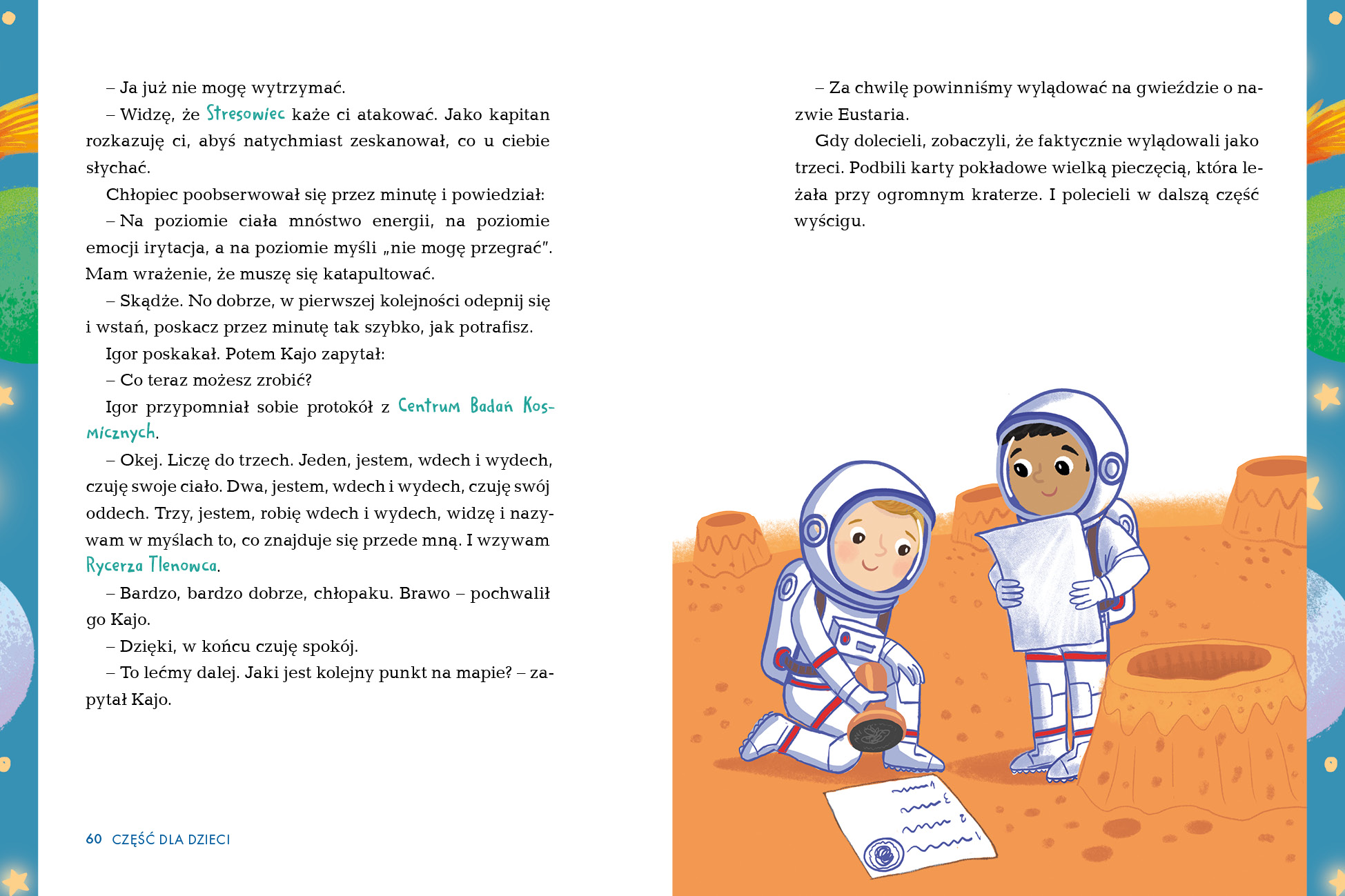 Kajo i Joka zapraszają na kosmiczną wyprawę na Planetę Spokojnego Oddechu. Będą się zmagać z Wewnętrznym Krytykiem i nauczą się, jak spokojny i uważny oddech wpływa na nasze ciało, umysł i emocje.