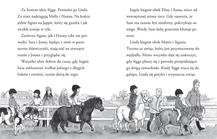 Elina bardzo się stęskniła za jazdą na ukochanym koniu. Na szczęście Sigge jest już zdrowy i wrócił do szkółki jeździeckiej „PSIKUS”. Przed Eliną i jej koleżankami mnóstwo nauki i wyzwań: trzeba udekorować stajnię przed Gwiazdką i przygotować paradę na Dzień Świętej Łucji.